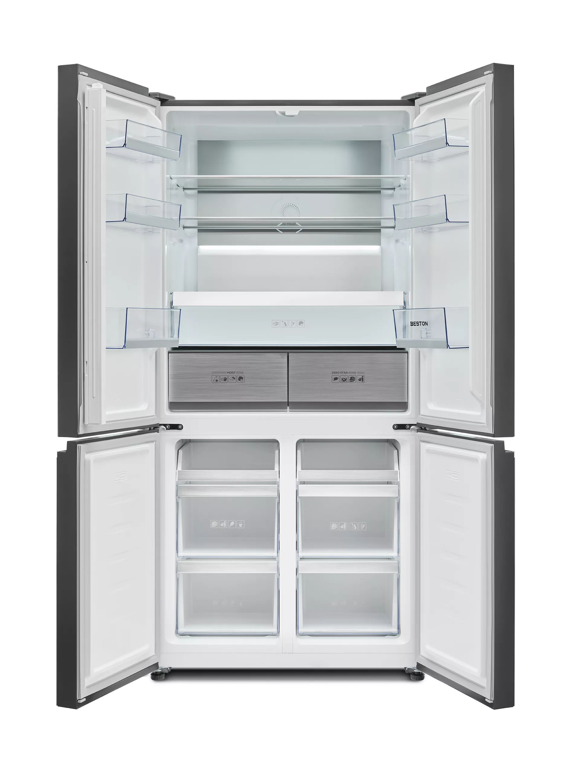 BMD-900BLV — стильный черный холодильник с системой Total No Frost и технологией Multi Air Flow для равномерного охлаждения. Объем 522 литра, нулевая зона и зона чиллера обеспечивают удобное хранение, а LED-освещение и автоматическая разморозка делают использование комфортным. Инверторный компрессор гарантирует тихую и энергоэффективную работу, а минималистичный дизайн с LED-дисплеем дополняет современный интерьер.