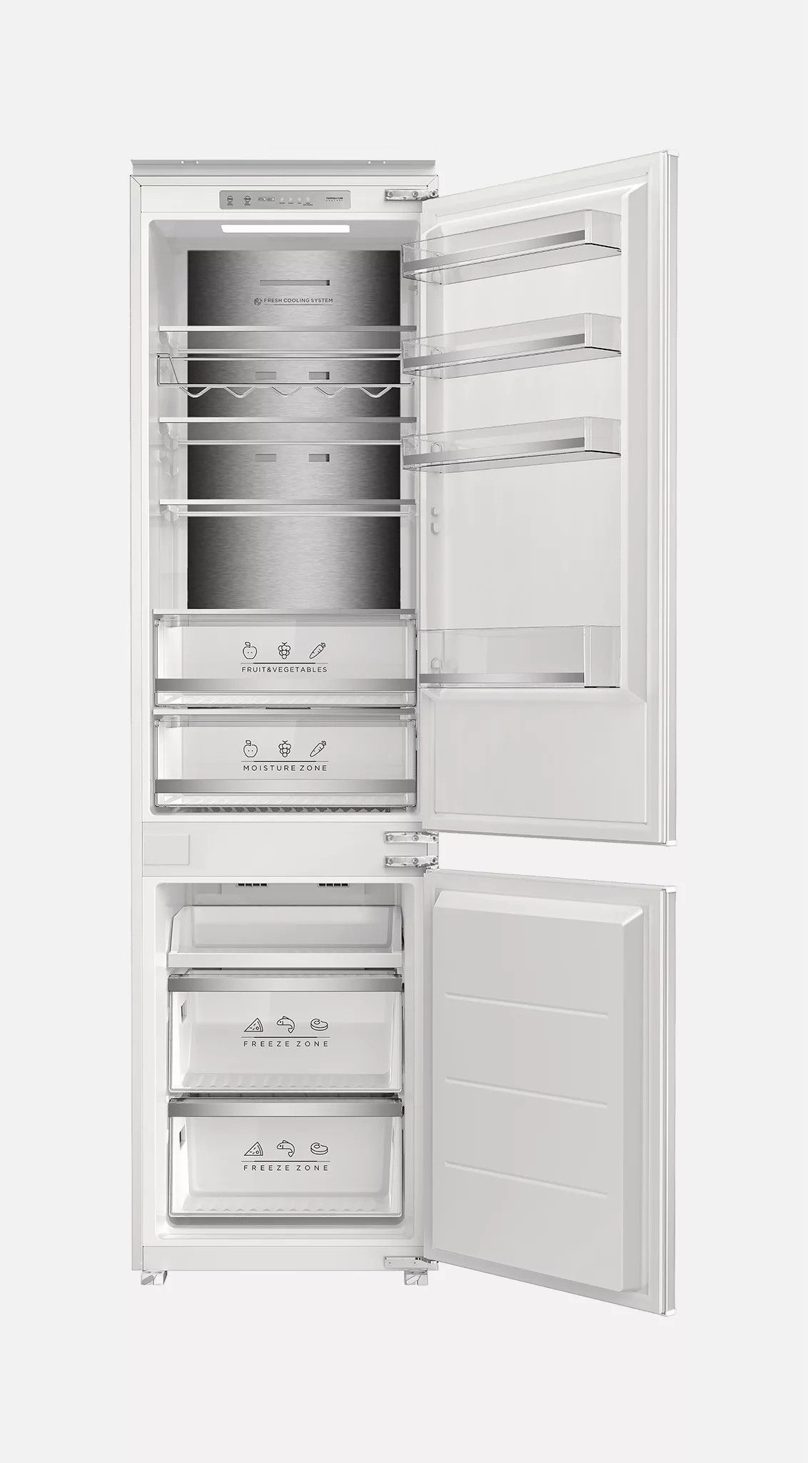 Холодильник BNI-542WT (300 л) с системой Total No Frost, технологией Multi Air Flow и функцией Metal Cooling для равномерного и быстрого охлаждения. Объём холодильной камеры — 213 л, морозильной — 87 л. Цифровое управление, внутренняя LED-панель, автоматическая разморозка и инверторный компрессор обеспечивают удобство и энергоэффективность A++. Уровень шума — 43 дБ, полки из закалённого стекла, зона чиллера и компактные размеры 540×550×1940 мм.