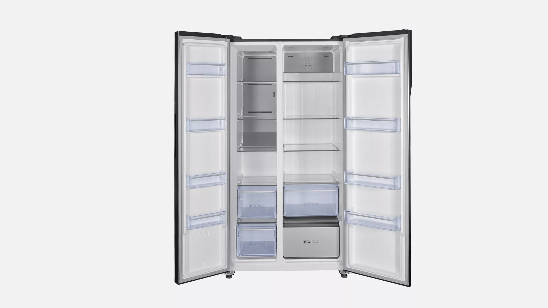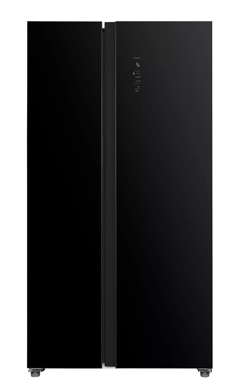 Холодильник BSB-905BLV (532 л) с элегантным дизайном из чёрного стекла оснащён системой Total No Frost, технологией Multi Air Flow и функцией Metal Cooling для равномерного охлаждения. Объём холодильной камеры — 347 л, морозильной — 185 л. Цифровое управление, внутренняя LED-панель, автоматическая разморозка, инверторный компрессор и энергоэффективность A++. Полки из закалённого стекла, зона чиллера, уровень шума — 43 дБ, размеры — 910×670×1770 мм.